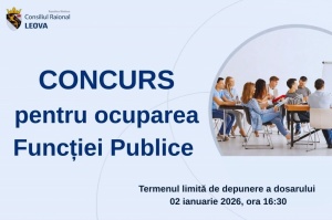 Dosarul pentru concurs poate fi depus prin poșta fizică/personal sau la adresa de e-mail: directiafinante@leova.md, până la data de 12.12.2024 Citeşte mai mult...